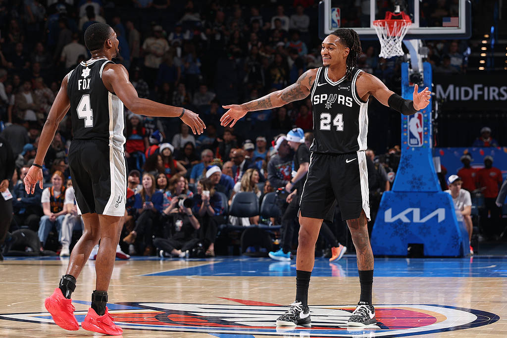 马刺半个月三杀卫冕冠军雷霆 取得联盟最长8连胜 admin 2025年12月26日 09:30 46 0 搜狐体育消息,北京时间12月26日,NBA圣诞大战,马刺击败雷霆,取得八连胜。马刺战绩来到23胜7负,继续稳居西部第二,联盟第三,距离雷霆迫近到2.5胜场差。本场比赛的胜利,是半个月来,马刺第三次击败雷霆。